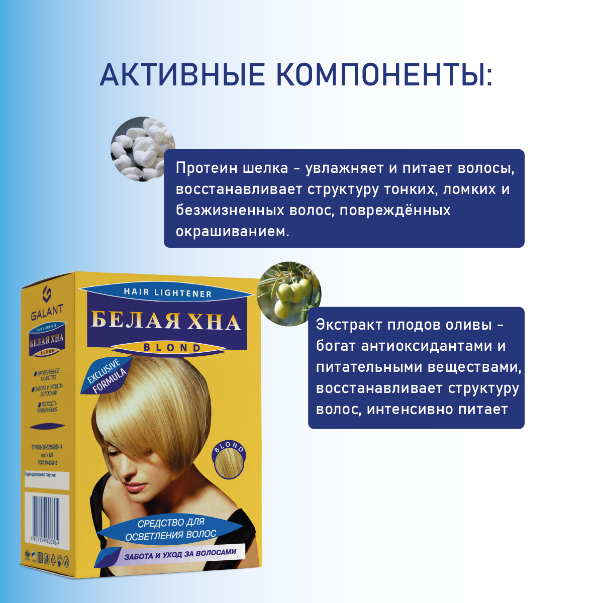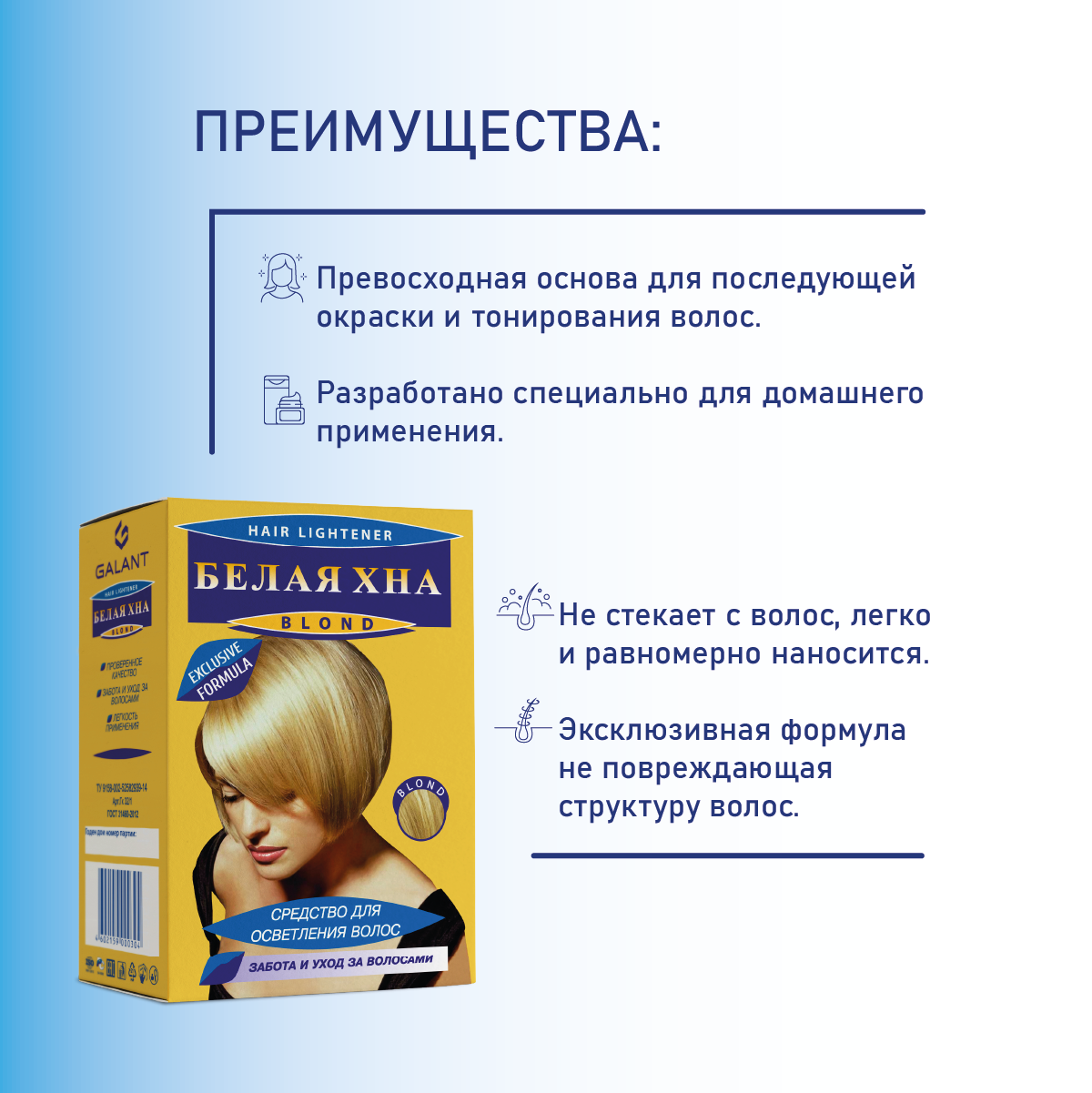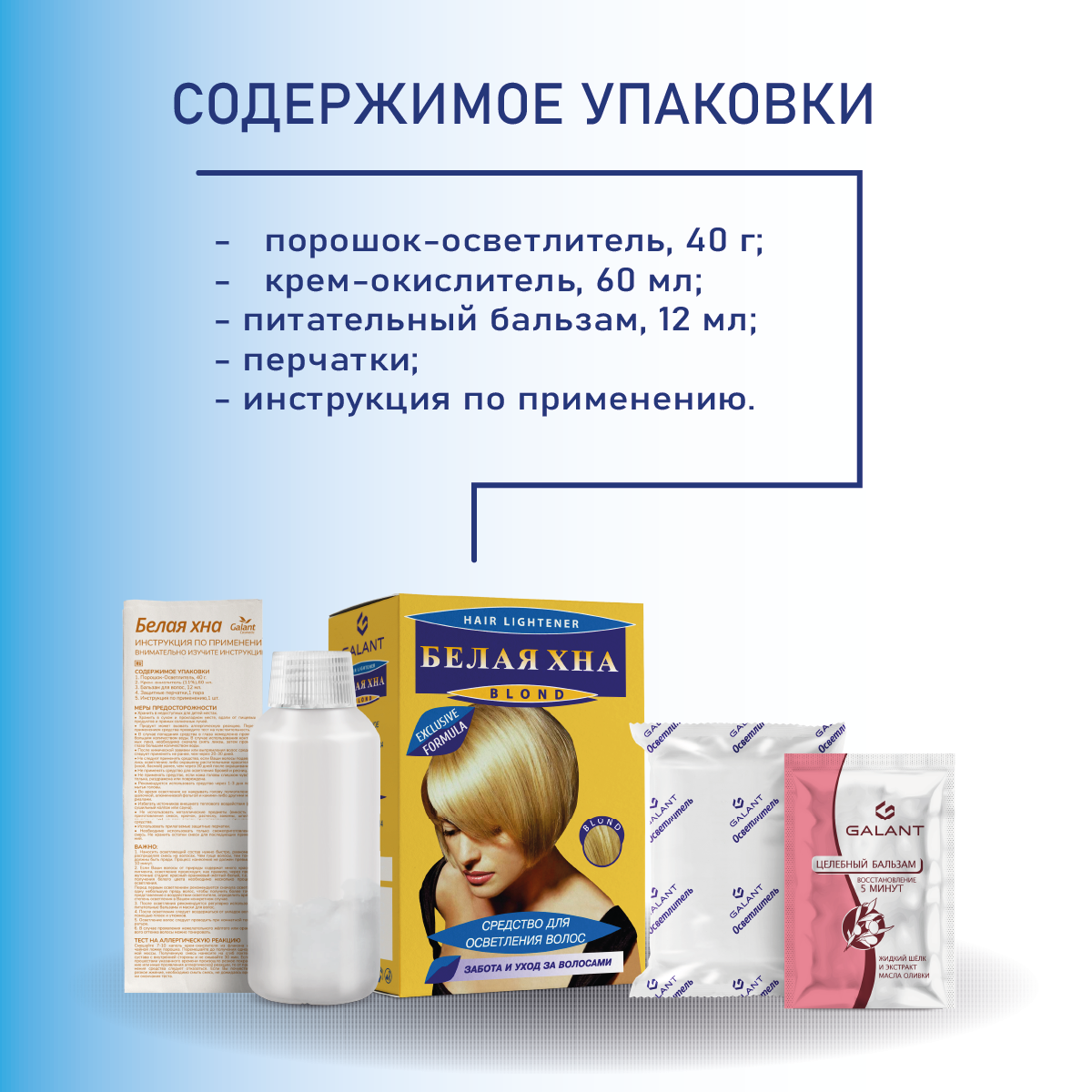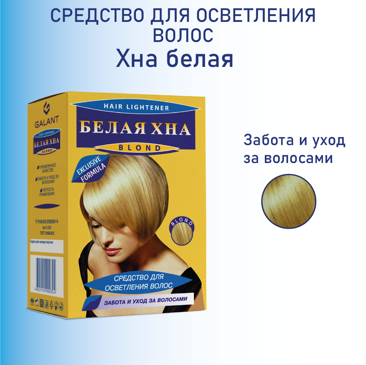 Средство для осветления волос Галант "Белая хна", Блонд, Забота и уход
