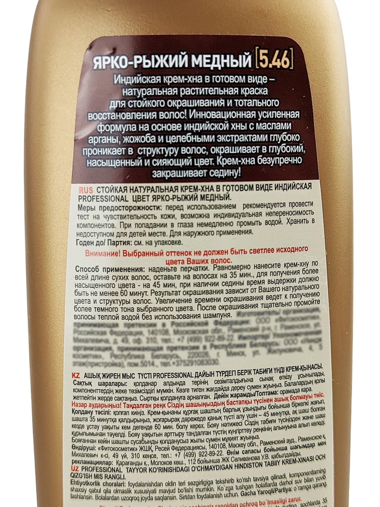 Крем-хна Индийская в готовом виде тон 5.46 Ярко-рыжий 50 мл