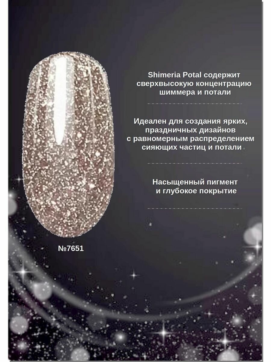 Гель лак светоотражающий для маникюра и педикюра/гель лак для ногтей/гель лак светоотражающий с поталью Shimeria Potal, 7мл №7650