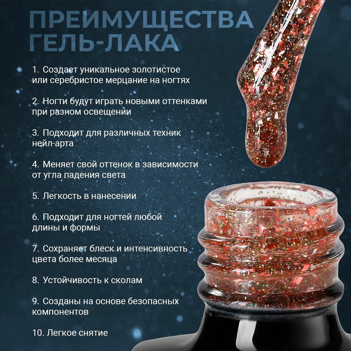 Гель лак светоотражающий для маникюра и педикюра/гель лак для ногтей/гель лак светоотражающий с поталью Shimeria Potal, 7мл №7650