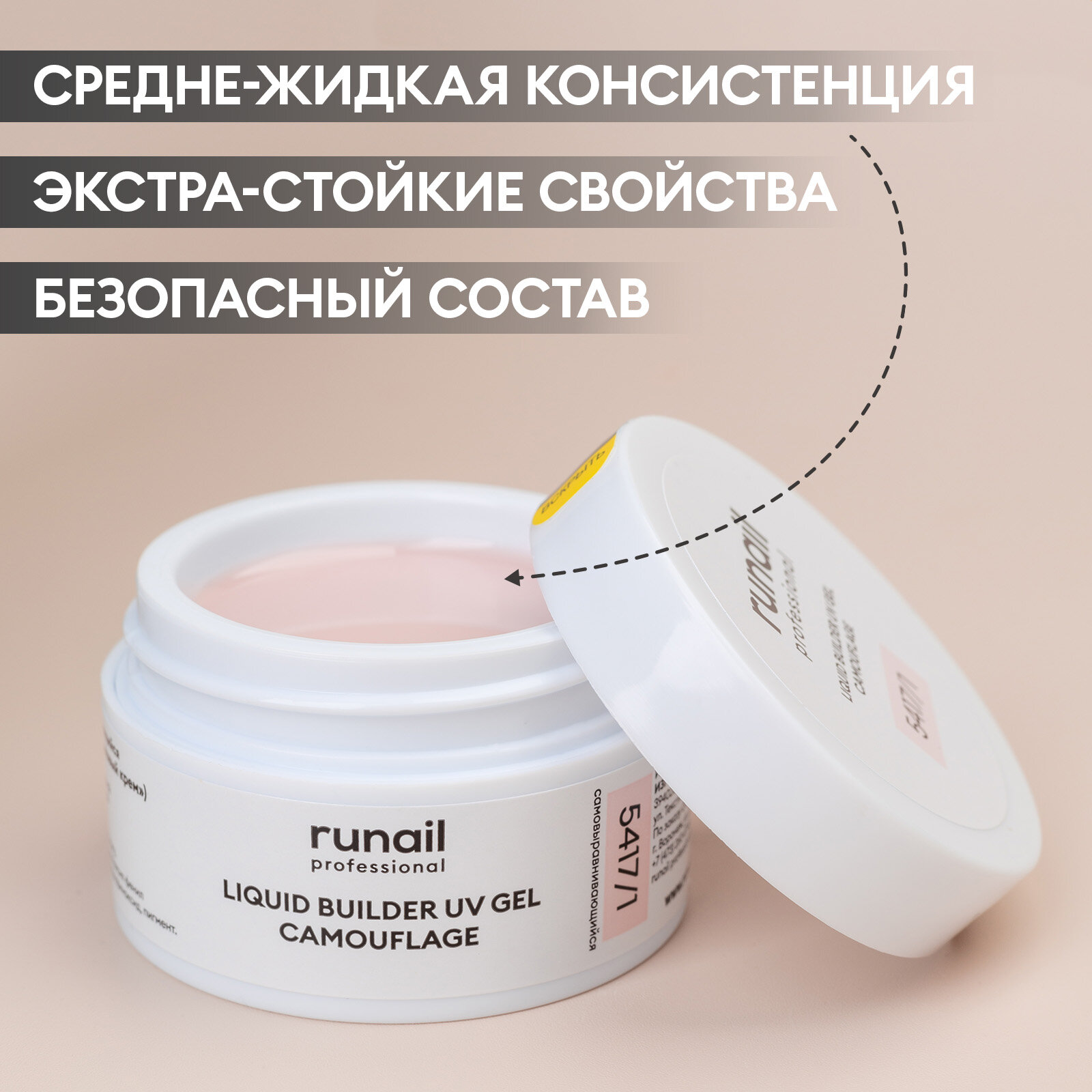 RUNAIL, Камуфлирующий УФ-гель (цвет: Айвори) №6377, 15 г