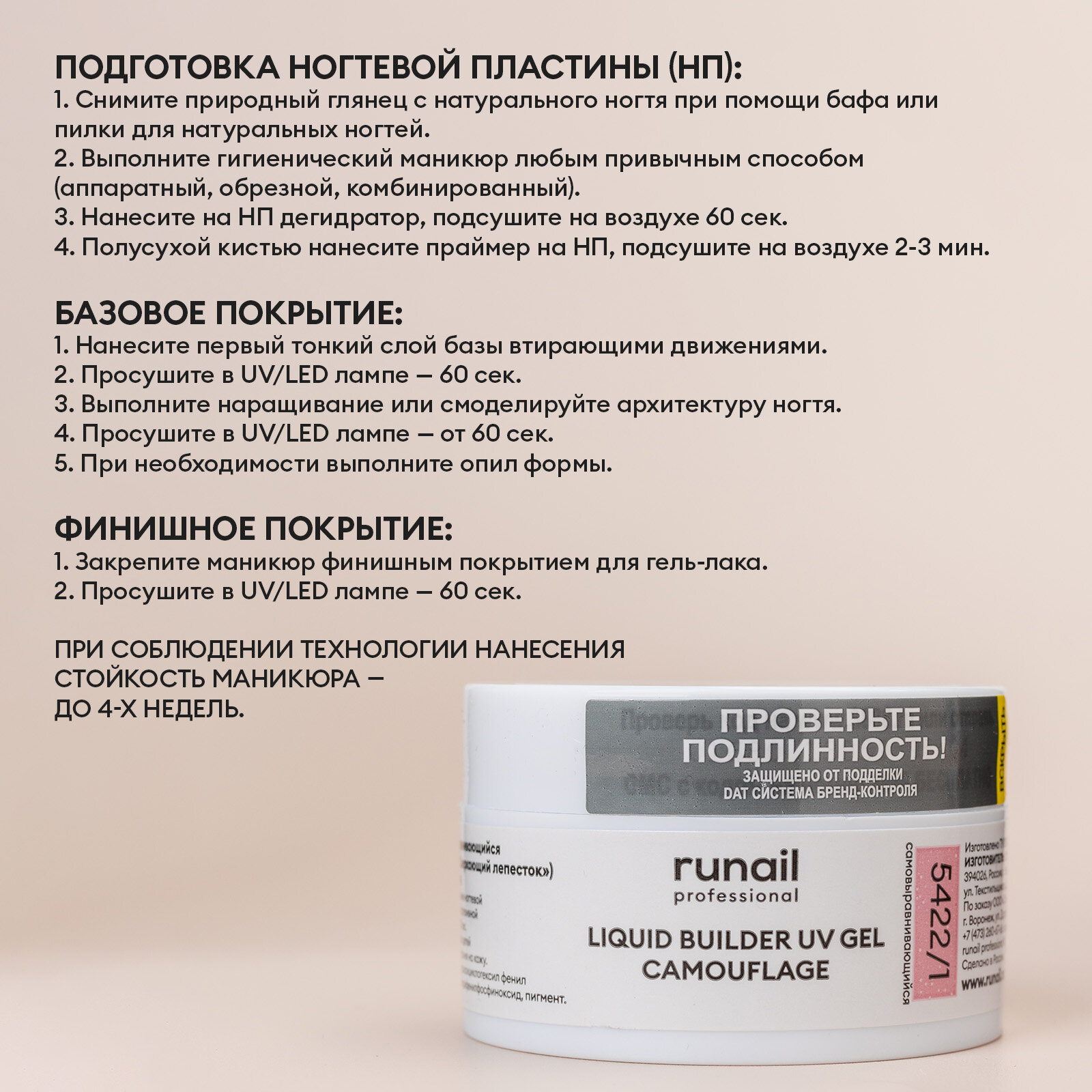 RUNAIL УФ-гель камуфлирующий, французский бежевый 15 г