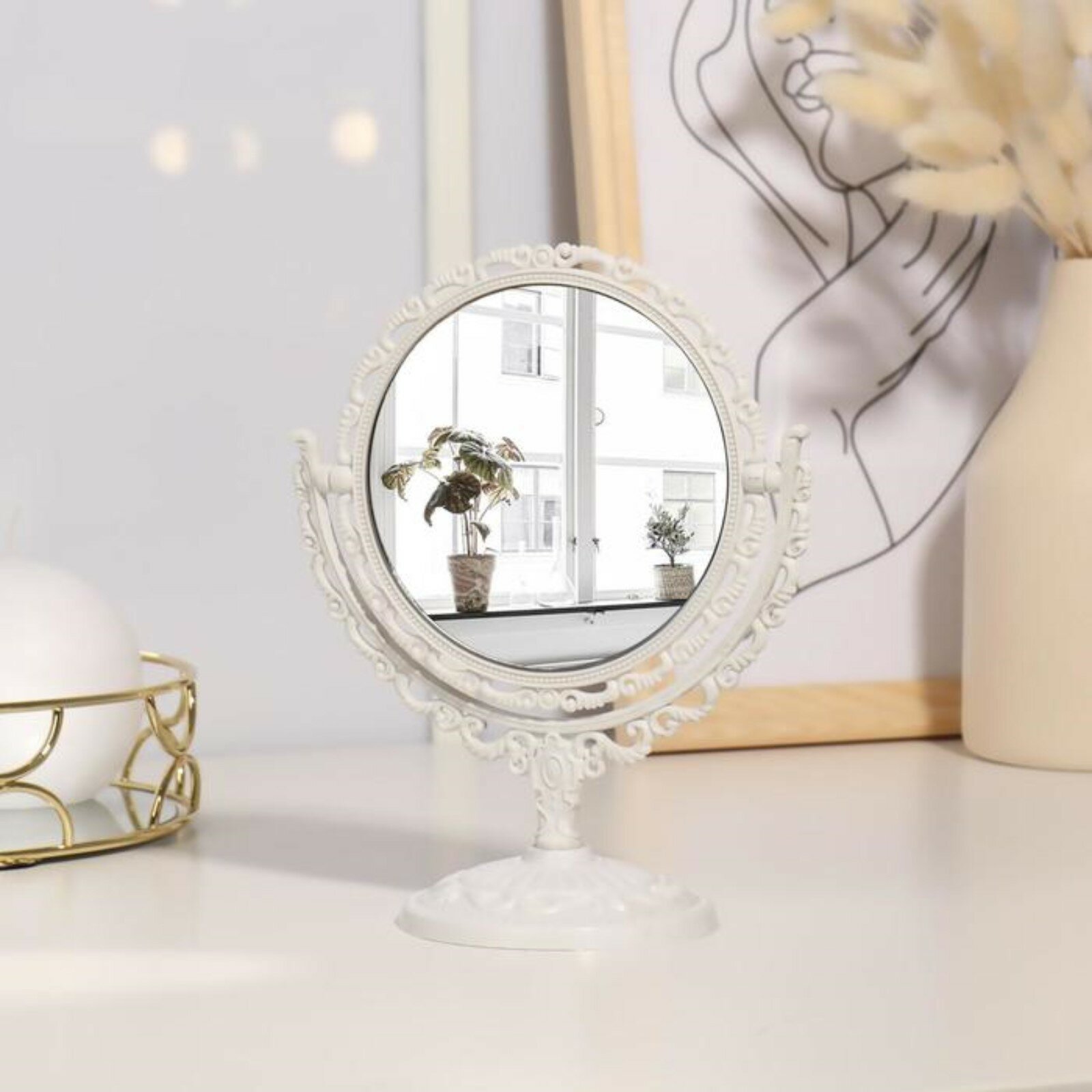 Купить Зеркало настольное «Круг», двустороннее, с увеличением, d зеркальной поверхности 9,5 см, цвет белый