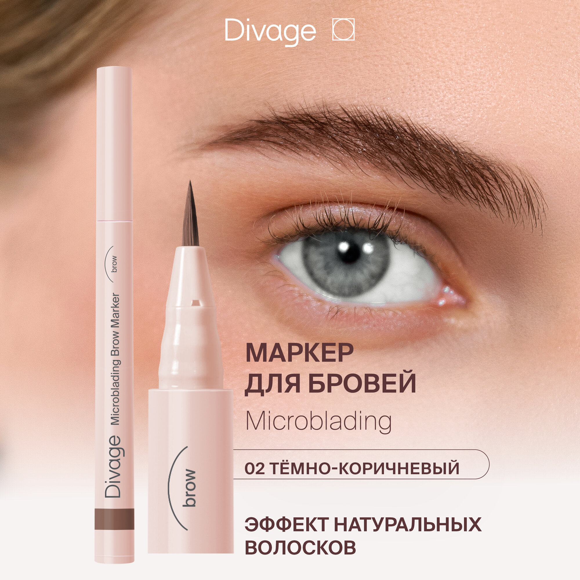 Купить Divage Стойкий маркер для бровей с эффектом Microblading, Тон 02 темно-коричневый