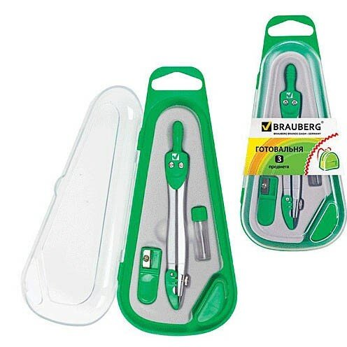 Готовальня Brauberg "Klasse", 3 предмета: циркуль 115 мм, грифель, точилка (210330)