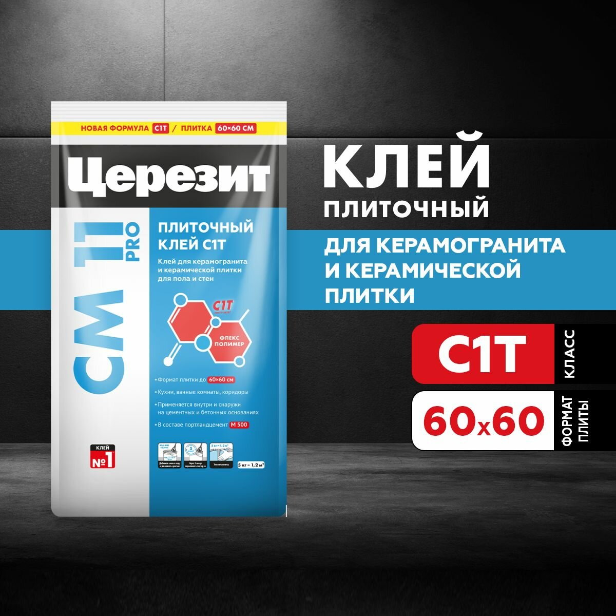 CERESIT CM 11 PRO клей для керамической плитки для пола и стен внутри и снаружи помещения (5кг)