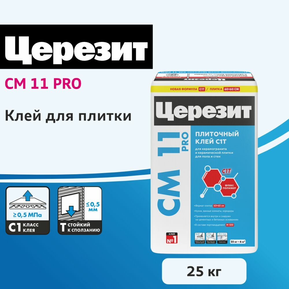 Клей CERESIT CM 11 PRO, для крепления керамической плитки, 25 кг