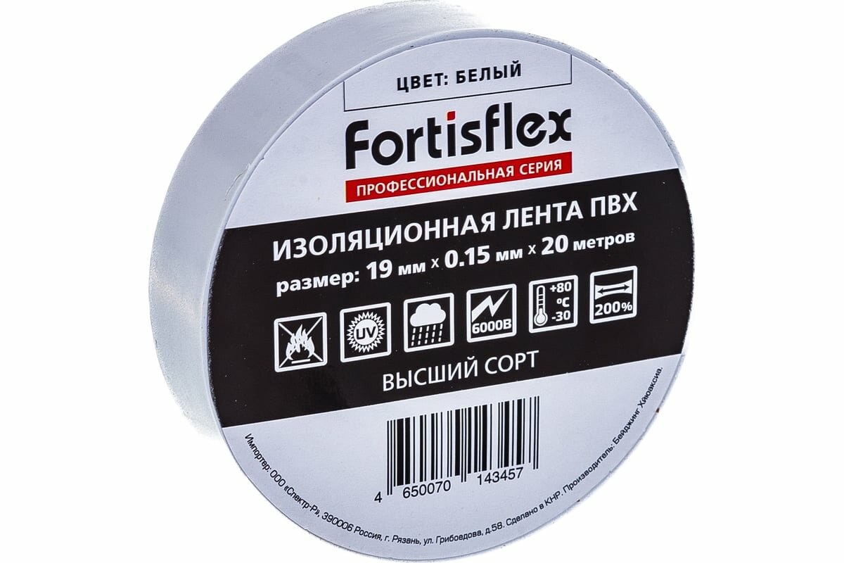 Лента изоляционная Fortisflex 19ммх20м белая