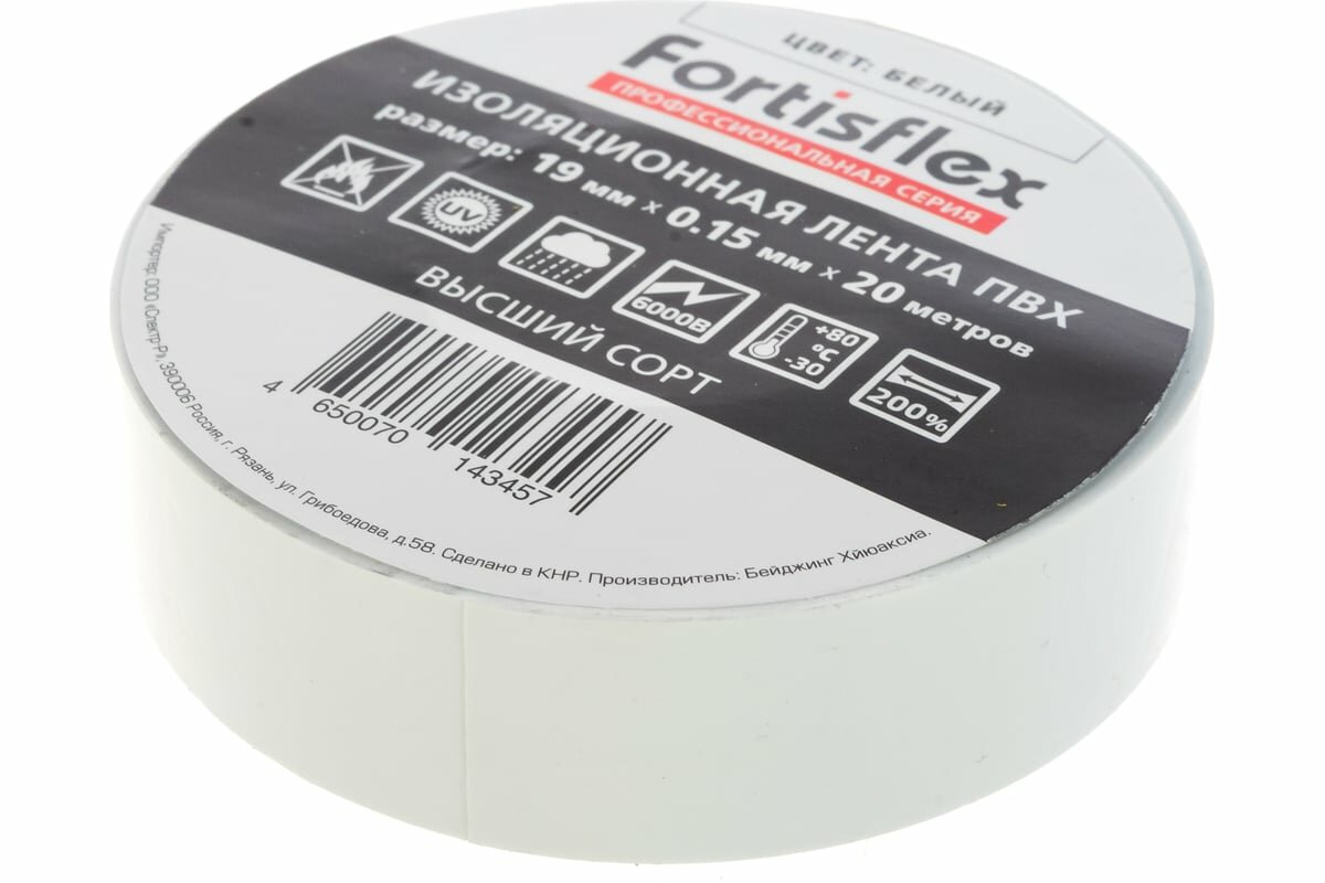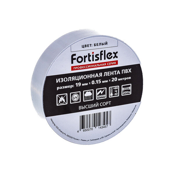 Fortisflex Изолента ПВХ 19х0.15х20 белая