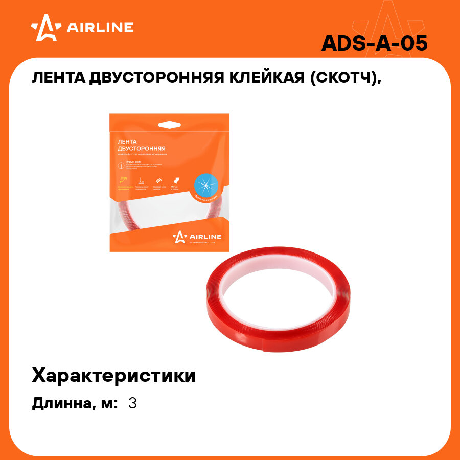 Лента Двусторонняя Клейкая (Скотч), 12 Мм*3 М, Акриловая, Прозрачная (Ads-A-05) Ads-A-05 AIRLINE арт. ADSA05