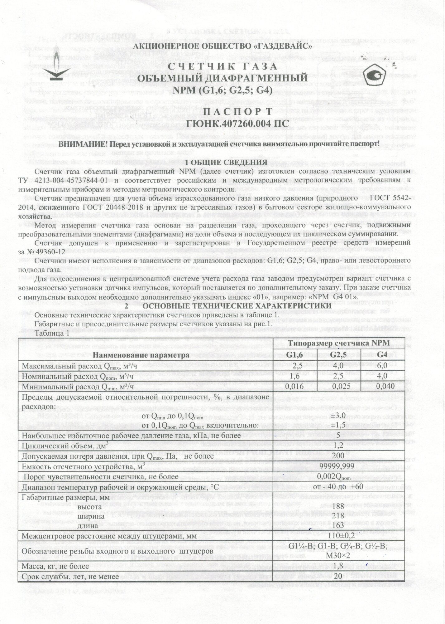 Счетчик газа бытовой Газдевайс NPM-G4 (110мм, резьба 1 1/4", вход газа слева-направо, 2021 г. в.) интересное: