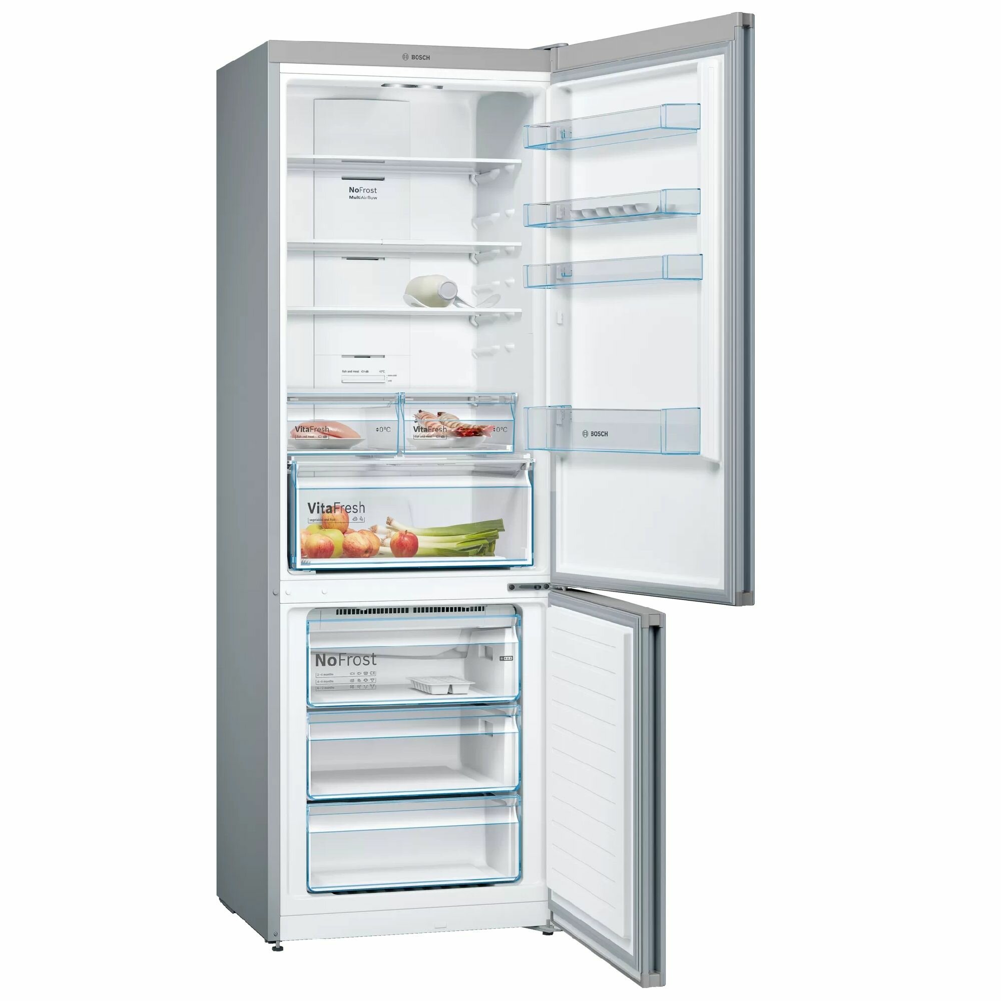 Холодильник Bosch KGN49XLEA, двухкамерный, нержавеющая сталь, No Frost, зона свежести влажная, мощность замораживания 12 кг/сутки