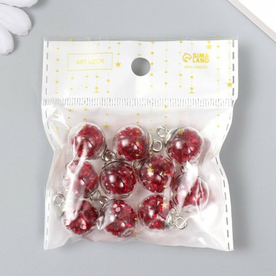 Арт Узор Подвеска декоративная для творчества стекло "Шар - камешки" красная d=1,6 см набор 10 шт