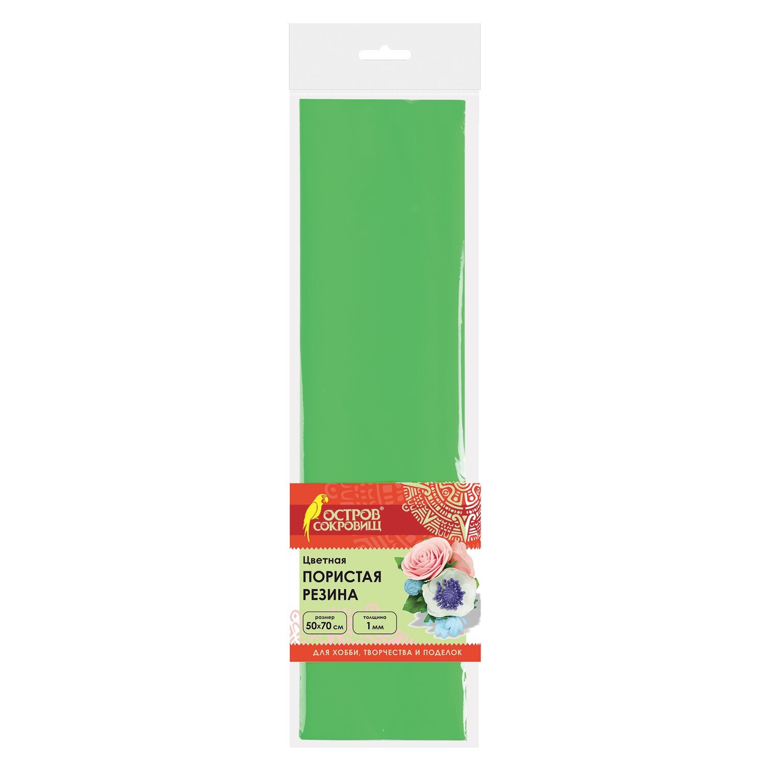 Пористая резина (фоамиран) для творчества, зеленая, 50х70 см, 1 мм, остров сокровищ