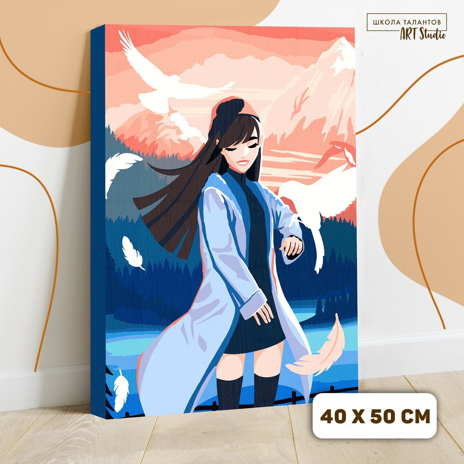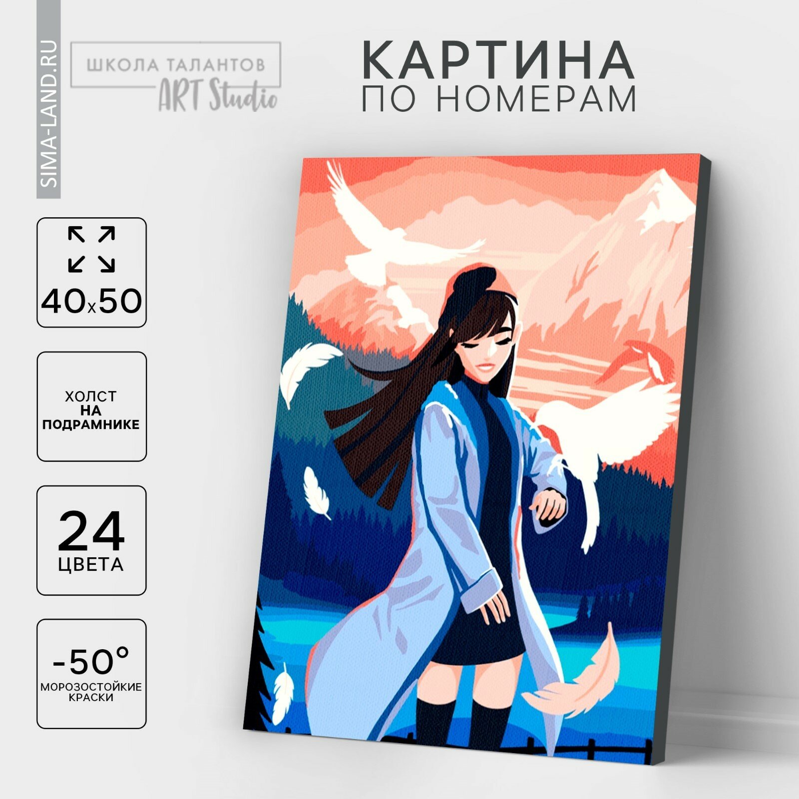 Школа талантов Картина по номерам на холсте с подрамником «Девушка с птицами» 40х50 см