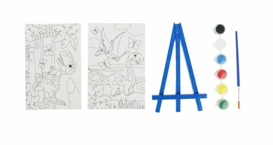 Купить Набор для детского творчества роспись холст по контуру Динозавры мульти АРТ CANV2PCS-MA1