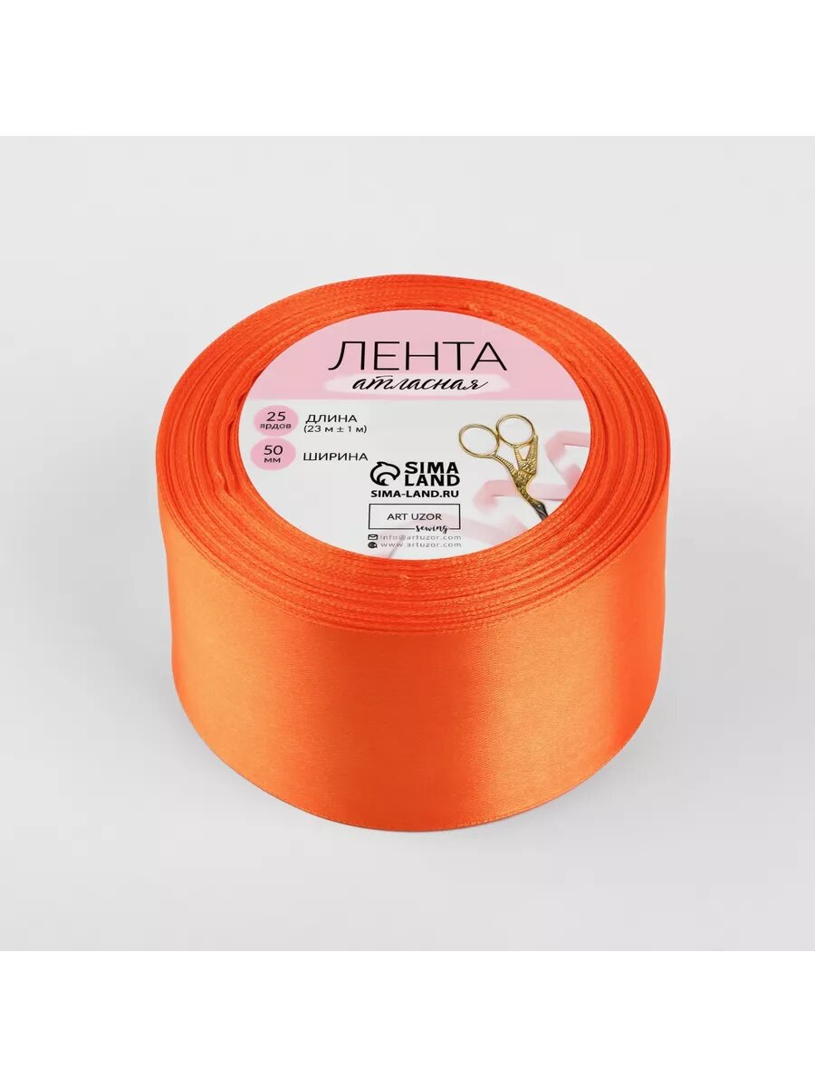 Лента атласная, 50 мм × 23 ± 1 м, цвет ярко-оранжевый №24, "Арт Узор", материал полиэстер