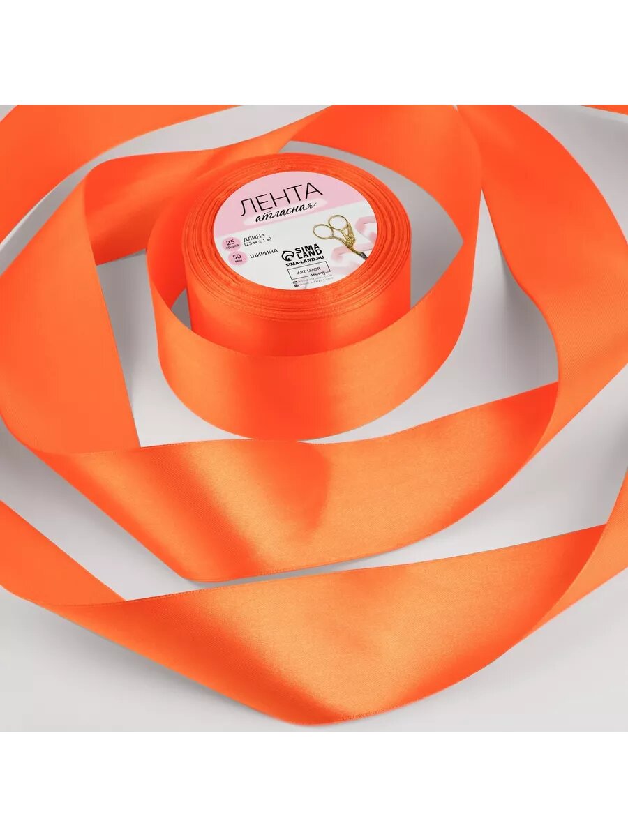 Лента атласная, 50 мм × 23 ± 1 м, цвет ярко-оранжевый №25 (арт. 1218441)