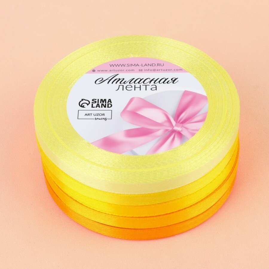 Арт Узор Набор атласных лент, 5 шт, размер 1 ленты: 6 мм × 23 ± 1 м, цвет жёлтый спектр