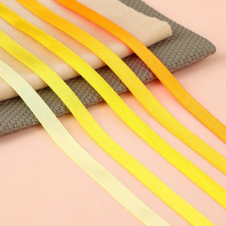 Набор атласных лент, 5 шт, размер 1 ленты: 6 мм x 23 1 м, цвет желтый спектр./В упаковке шт: 1