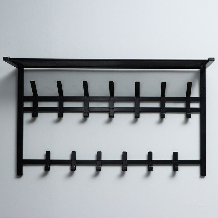 Вешалка настенная с полкой «ВСП7», 265×725х220 мм, 6 крючков, металл, черная