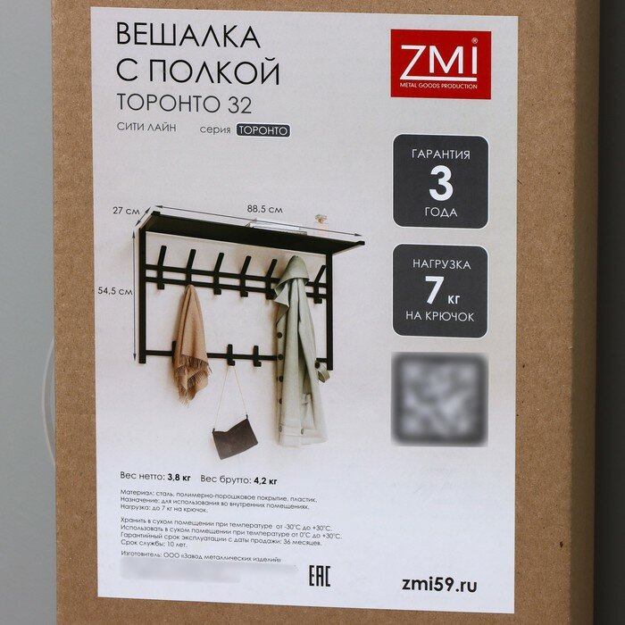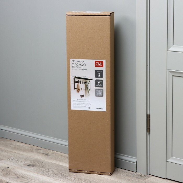 ЗМИ (Завод металлических изделий ООО) Вешалка настенная с полкой ЗМИ 80, 6 крючков, 72,5 x 22 x 26,5 см, черная