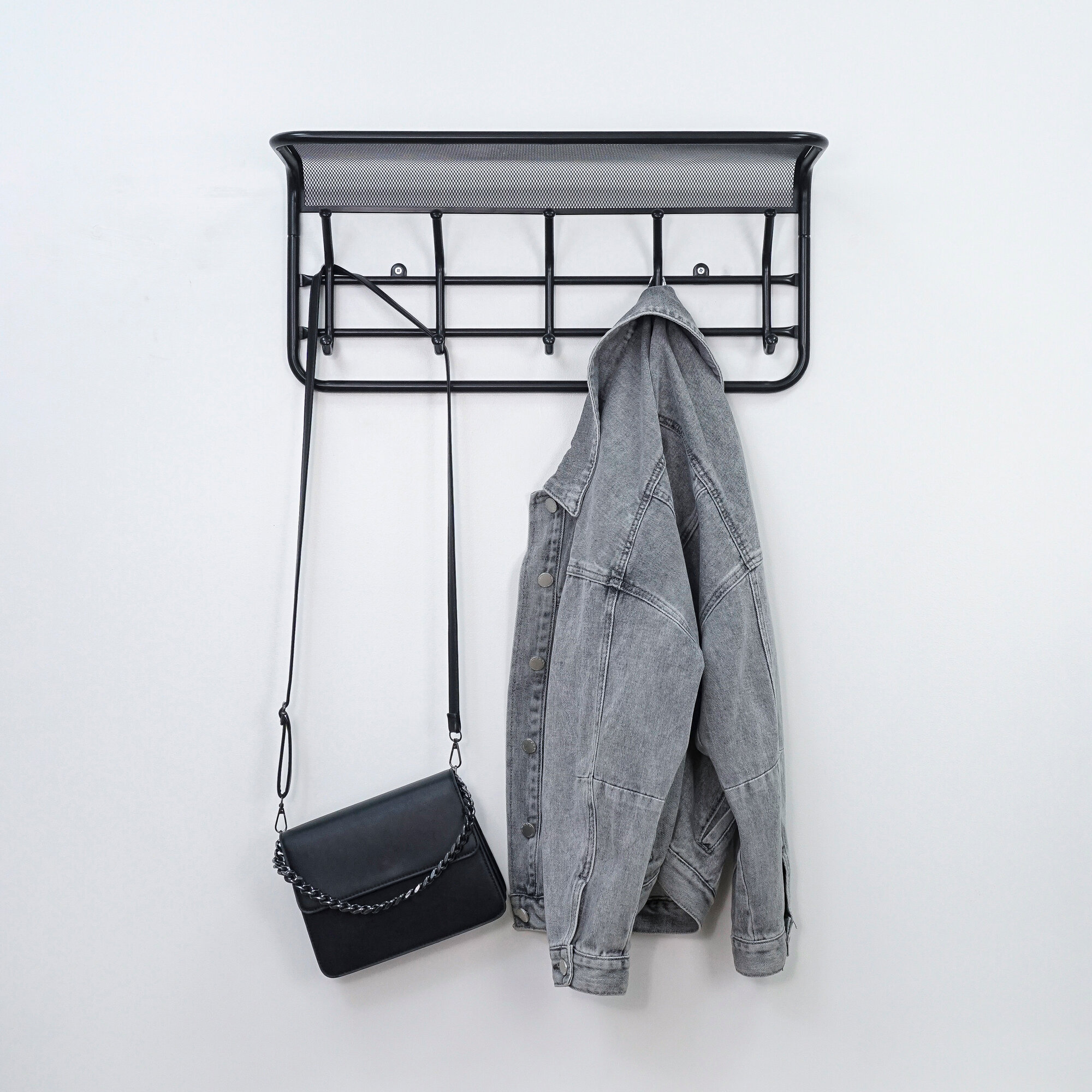 Вешалка настенная с полкой «ВСП7», 265×725х220 мм, 6 крючков, металл, черная