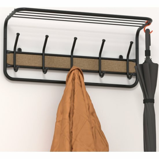 Вешалка настенная с полкой "ВСП7", 265х725х220 мм, 6 крючков, металл, черная