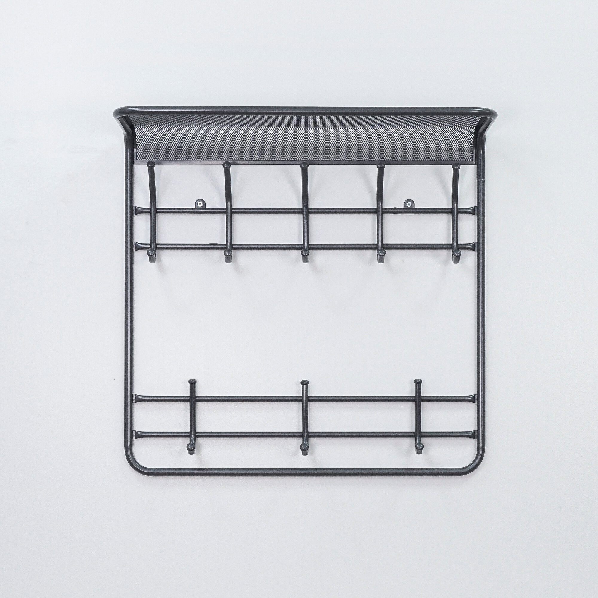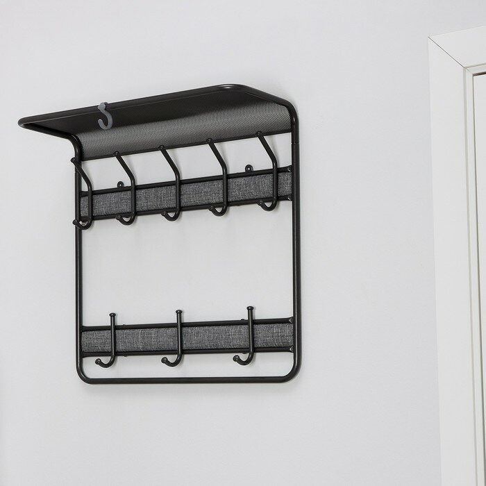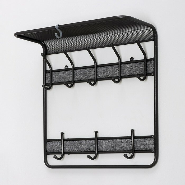 Вешалка настенная с полкой «ВСП7», 265×725х220 мм, 6 крючков, металл, черная