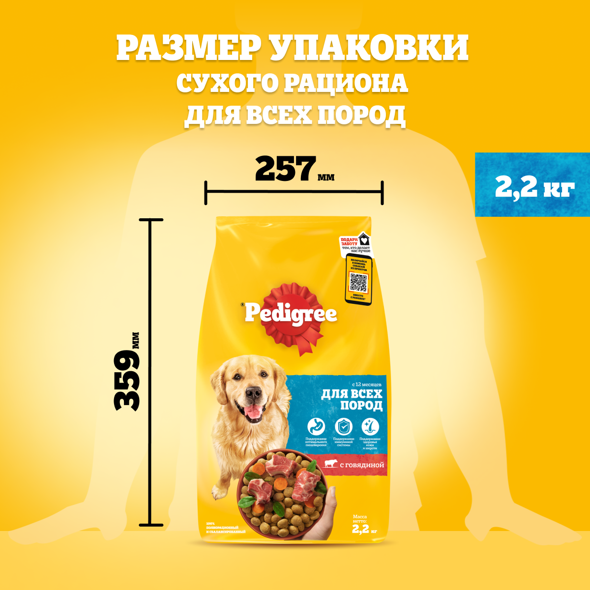 Корм сухой Pedigree для собак всех пород Говядина 2,2кг / 1 шт