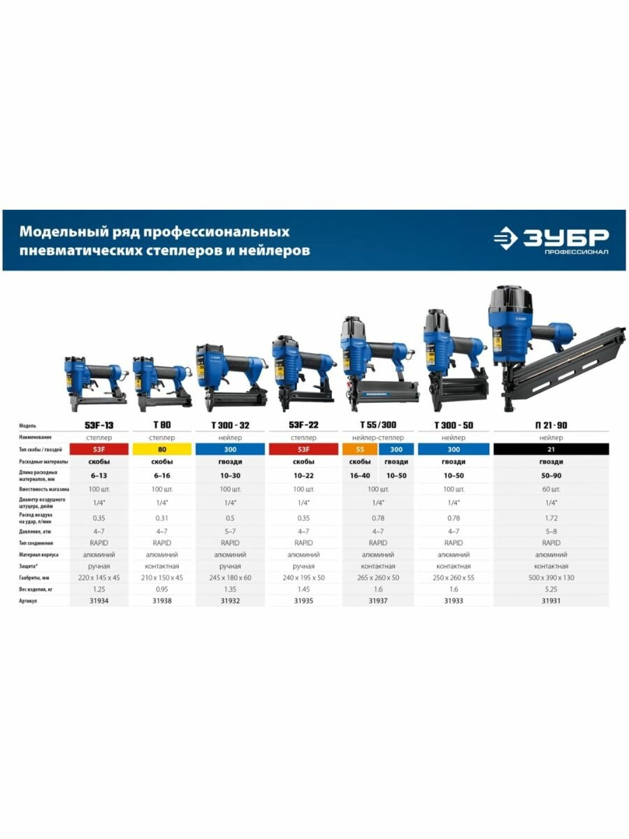 ЗУБР Т80, пневматический степлер для скоб 21Ga, тип 80 (6-16 мм), Профессионал (31938)