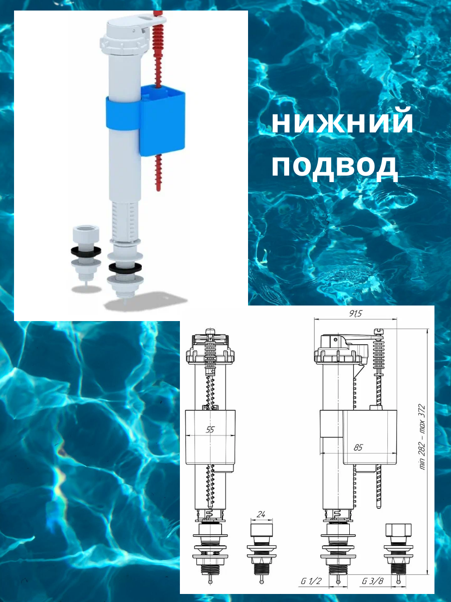 Заливной клапан универсальный Ани Пласт 1/2 и 3/8 нижн/подв. WC5513 интересное: