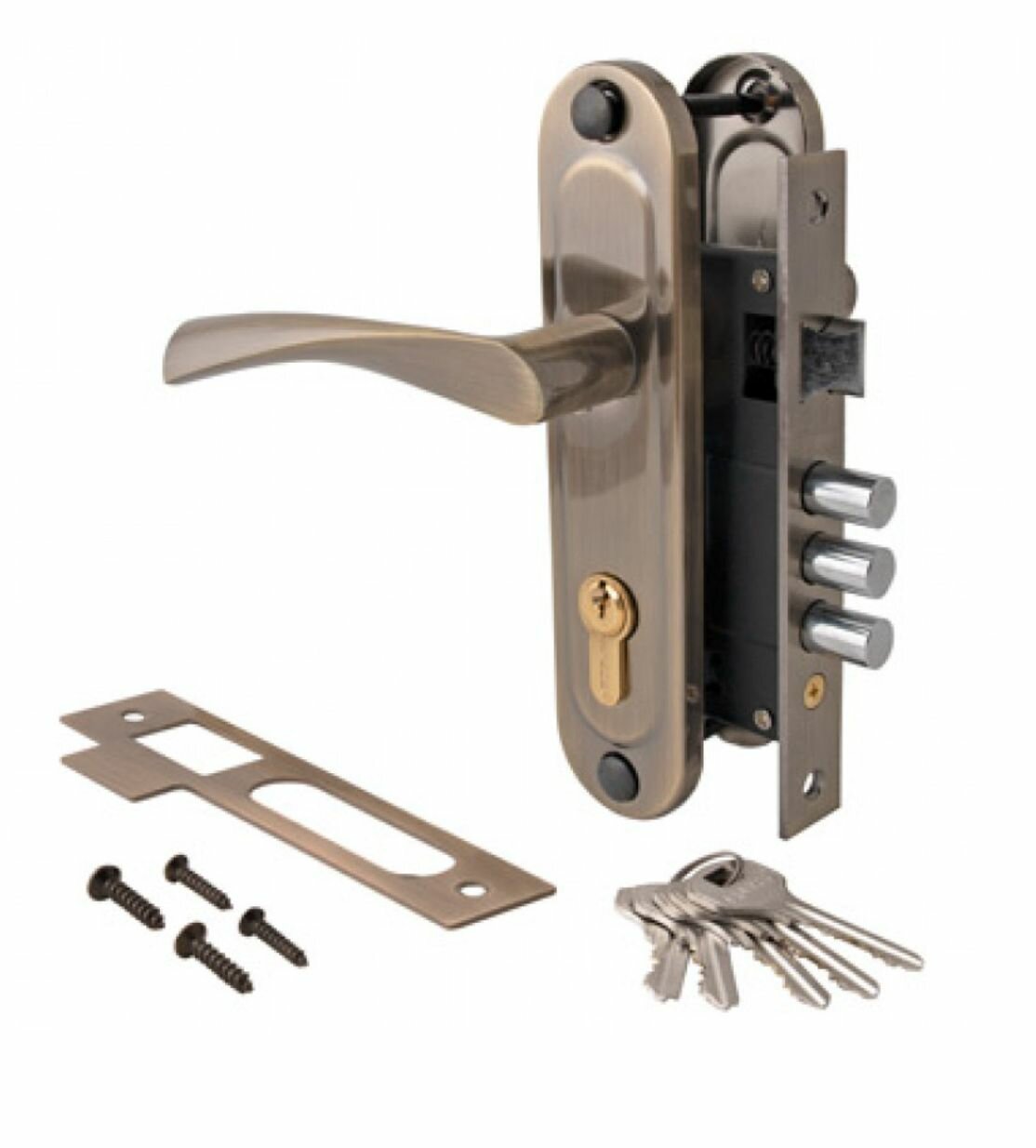 Замок врезной Apecs, 1027/60 AB, 16816, ручка в комплекте, цилиндровый, бронзовый