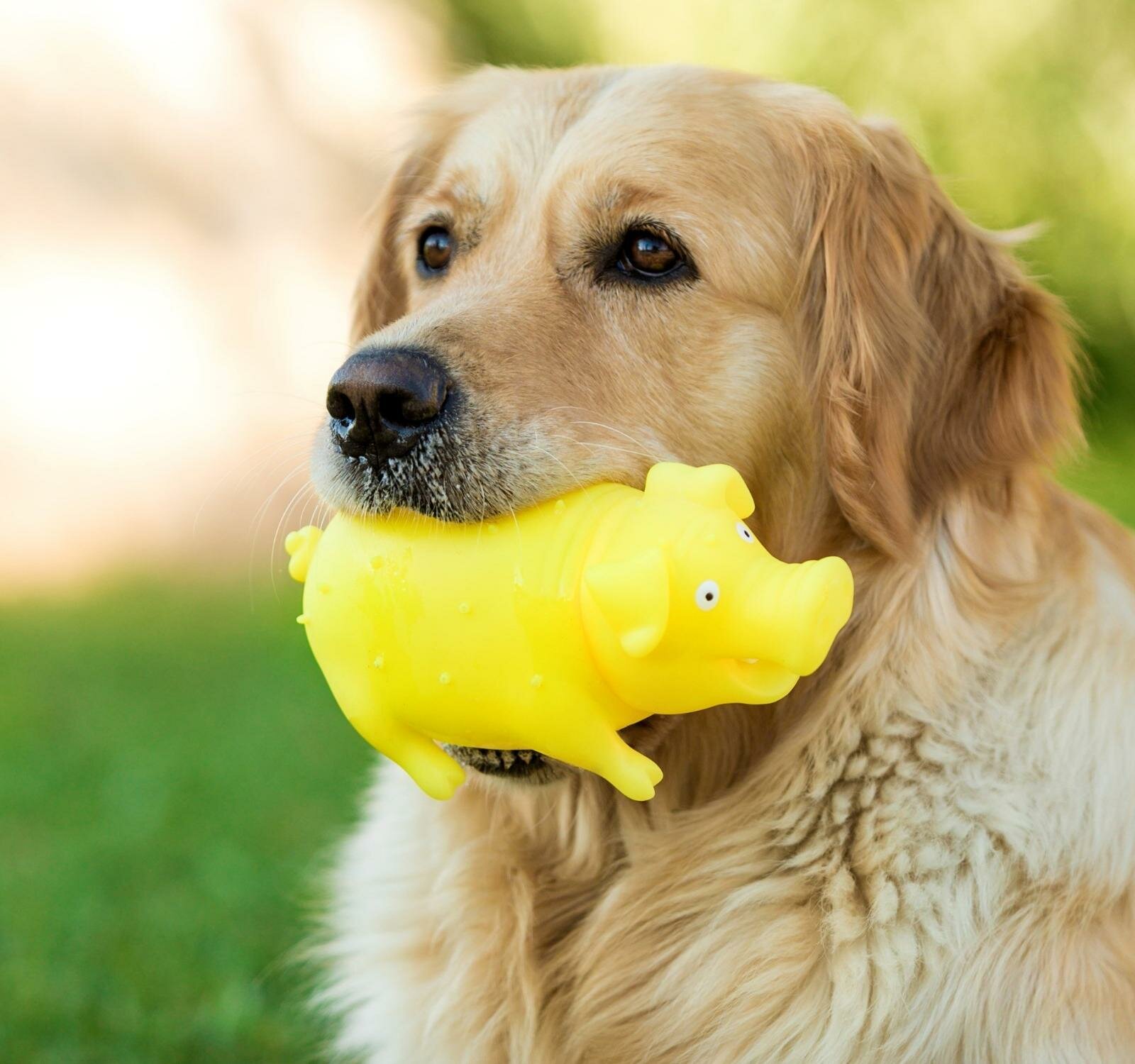 Игрушка пищащая "Весёлая свинья" для собак хрюкающая светящаяся 19 см жёлтая