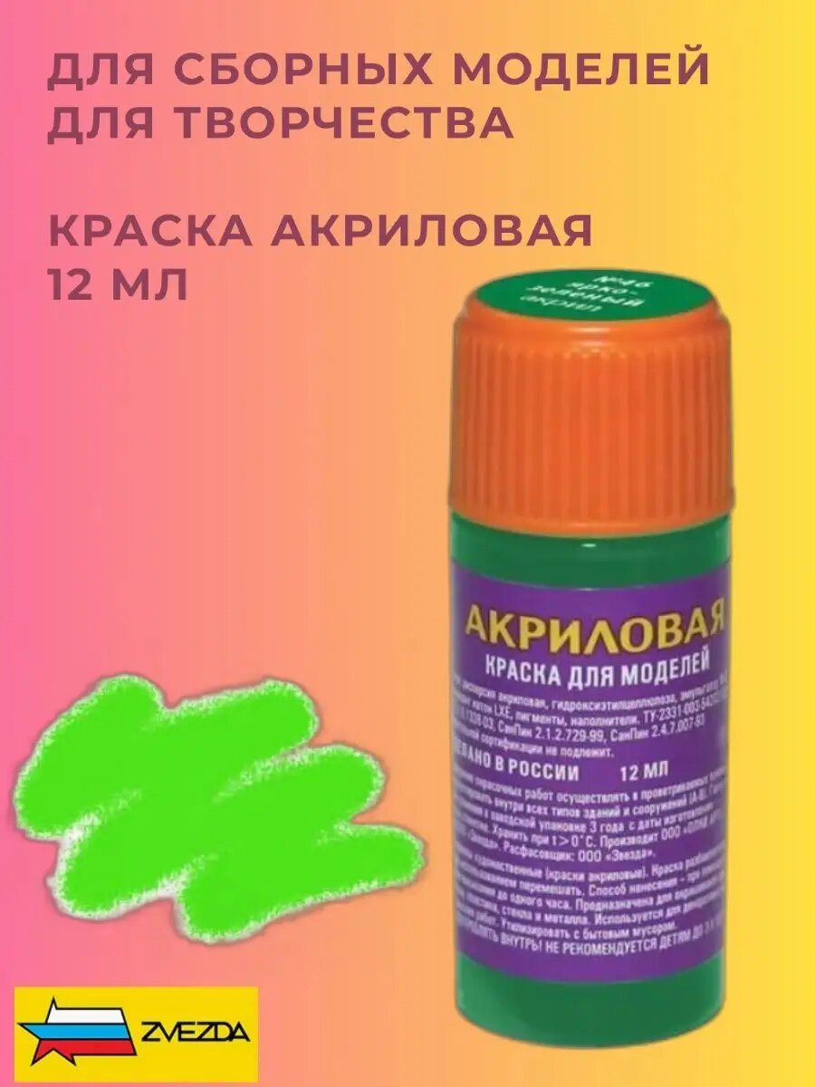 Краска акриловая для моделей Звезда (ZVEZDA) 12 мл, зеленый яркий (46-АКР)