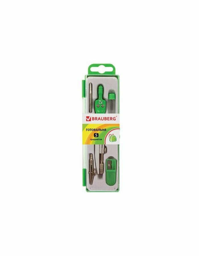 Готовальня Brauberg "Klasse", 5 предметов: циркуль 125 мм, 2 вставки, грифель, точилка (210336)