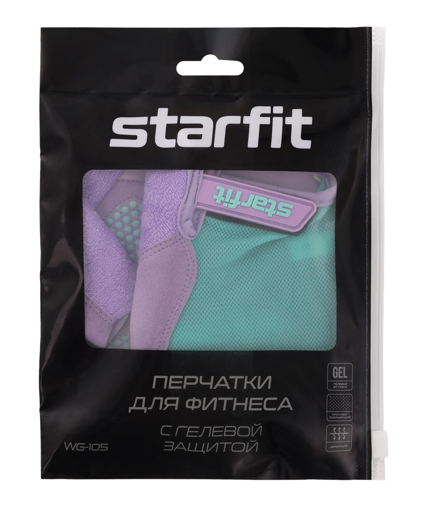 Перчатки для фитнеса STARFIT WG-105 с гелевыми вставками, мятный/лиловый размер S
