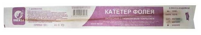 Набор урологических Катетеров Фолея 2-х INEKTA латексных с силиконовым покрытием CH14 30 мл, 2 шт интересное: