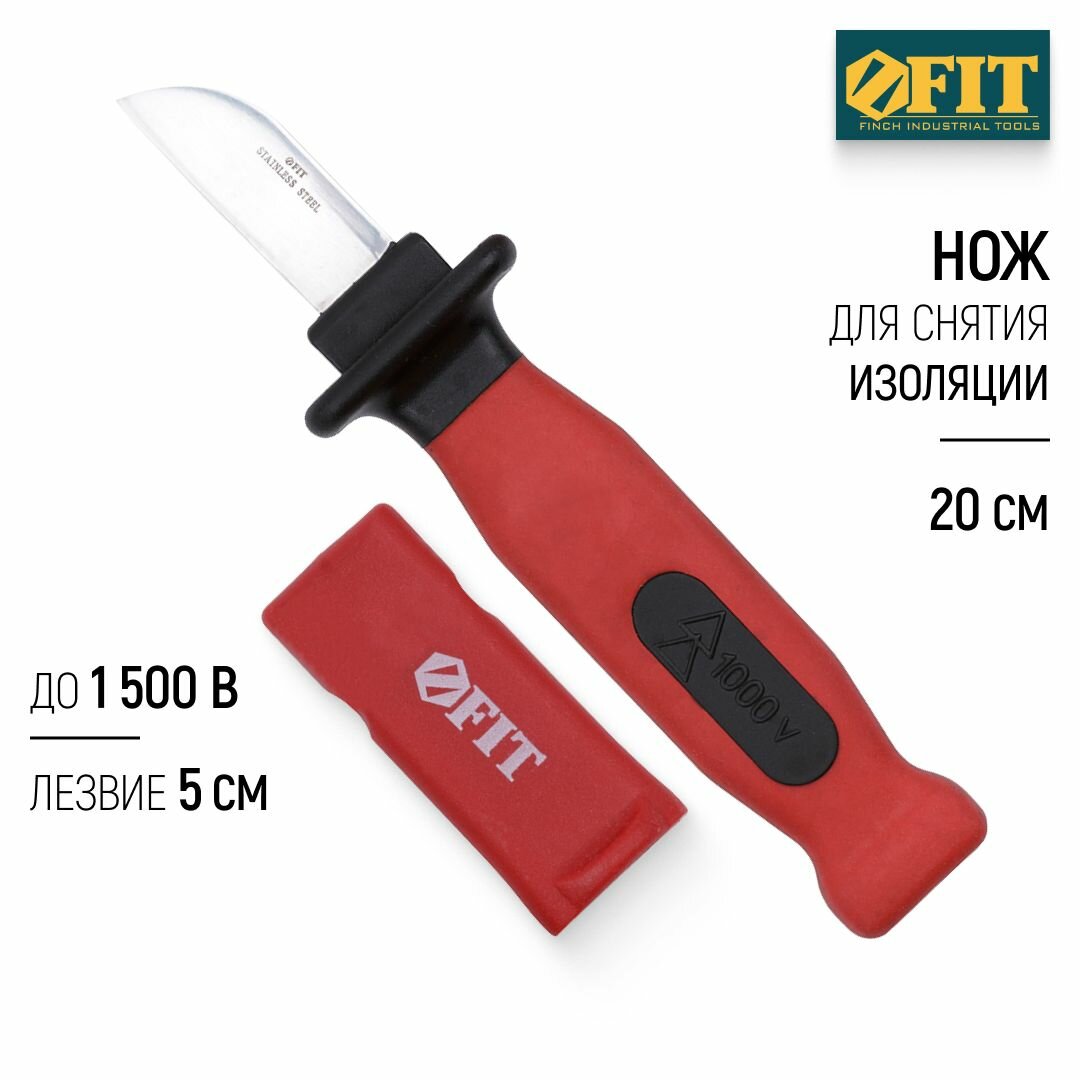 Нож электрика FIT 10604 1000 В с пяткой, нерж.сталь, 170 мм, лезвие 37 мм, прорезин.ручка