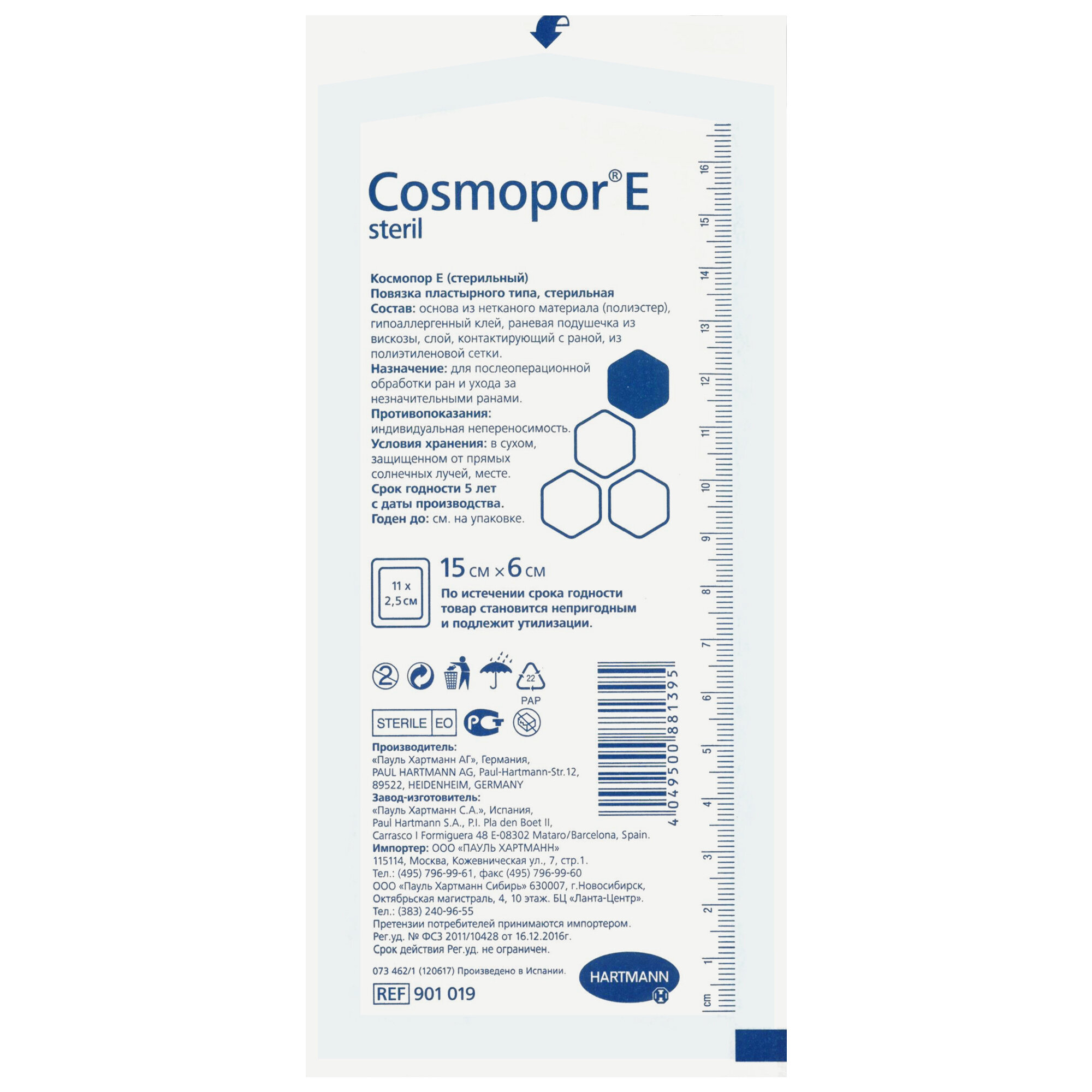 Перевязочные материалы пауль хартманн Повязка на рану Космопор Е с впитывающей подушечкой стерил 15х6 см №1 (инд уп-ка)