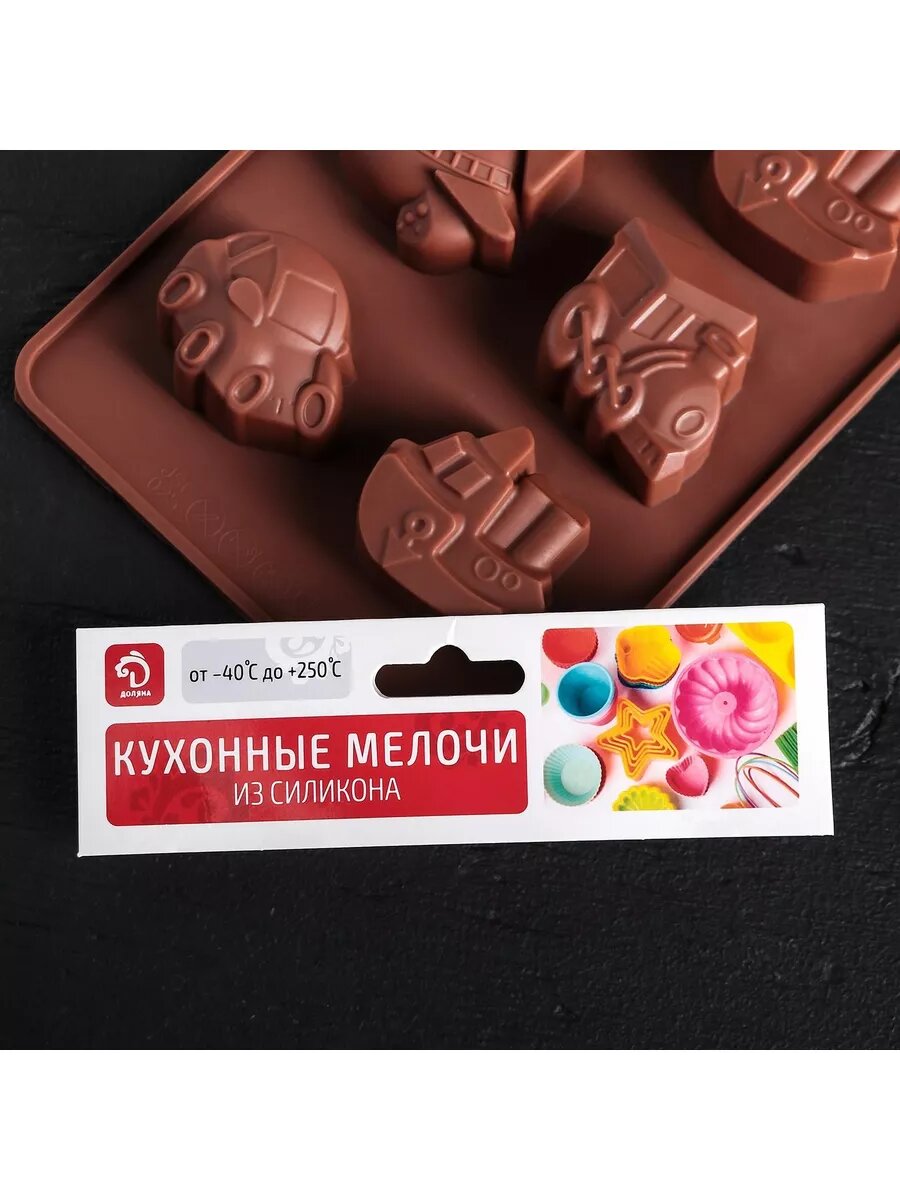 Форма силиконовая для льда и кондитерских украшений Доляна Машинки , 21 11 см, 8 ячеек (4,3 3,5 см), цвет шоколадный