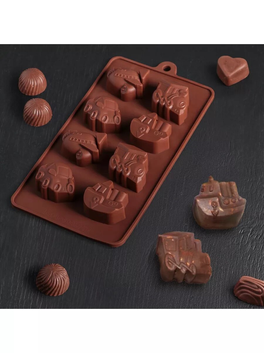 Форма для шоколада Доляна Машинки, 8 ячеек, шоколадный
