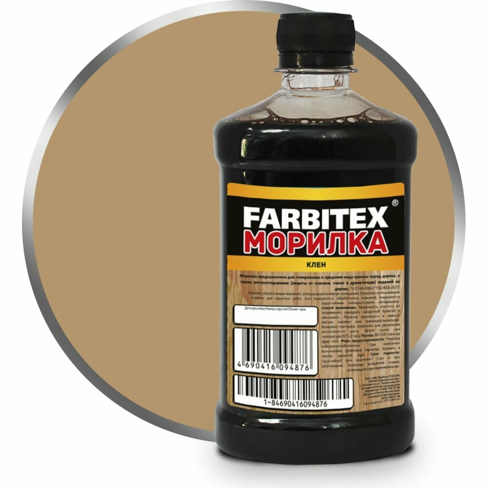 Морилка деревозащитная водная 0,5 л FARBITEX (Артикул: 4100008060; Цвет: Клён; Фасовка = 0,5 л)