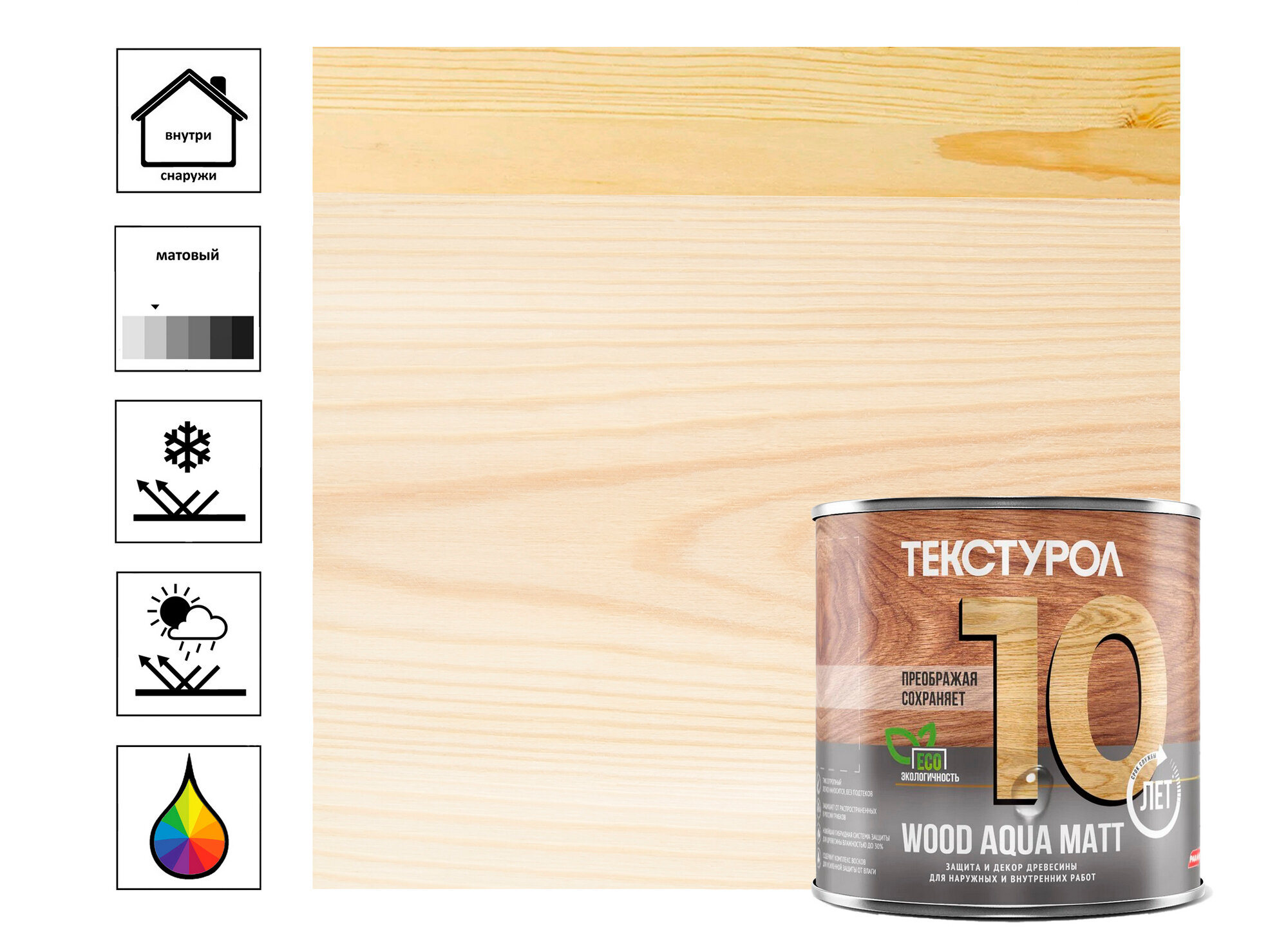 Текстурол WOOD AQUA MATT деревозащитное средство на вод. основе Сосна 10л Лк-00008237