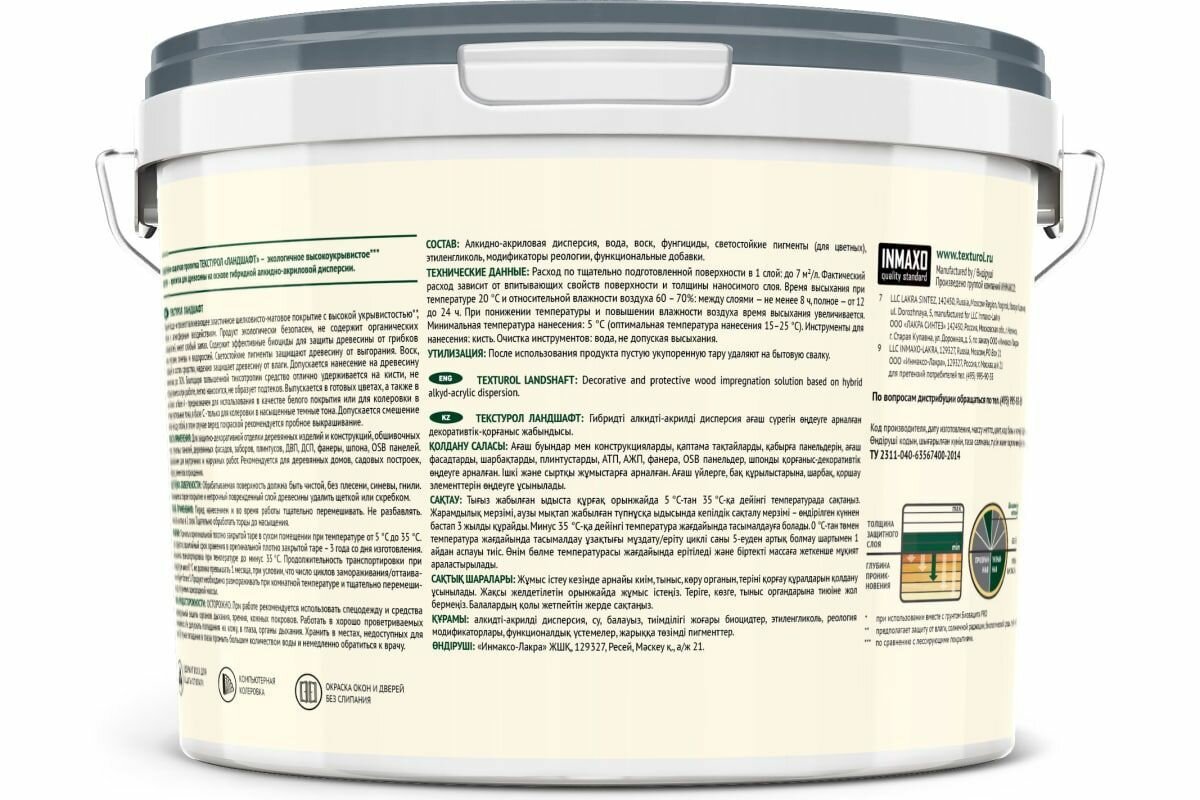Защита и Декор Древесины Текстурол Ландшафт 0.9л Серый, Матовая, Алкидно-Акриловая для Внутренних и Наружных Работ.
