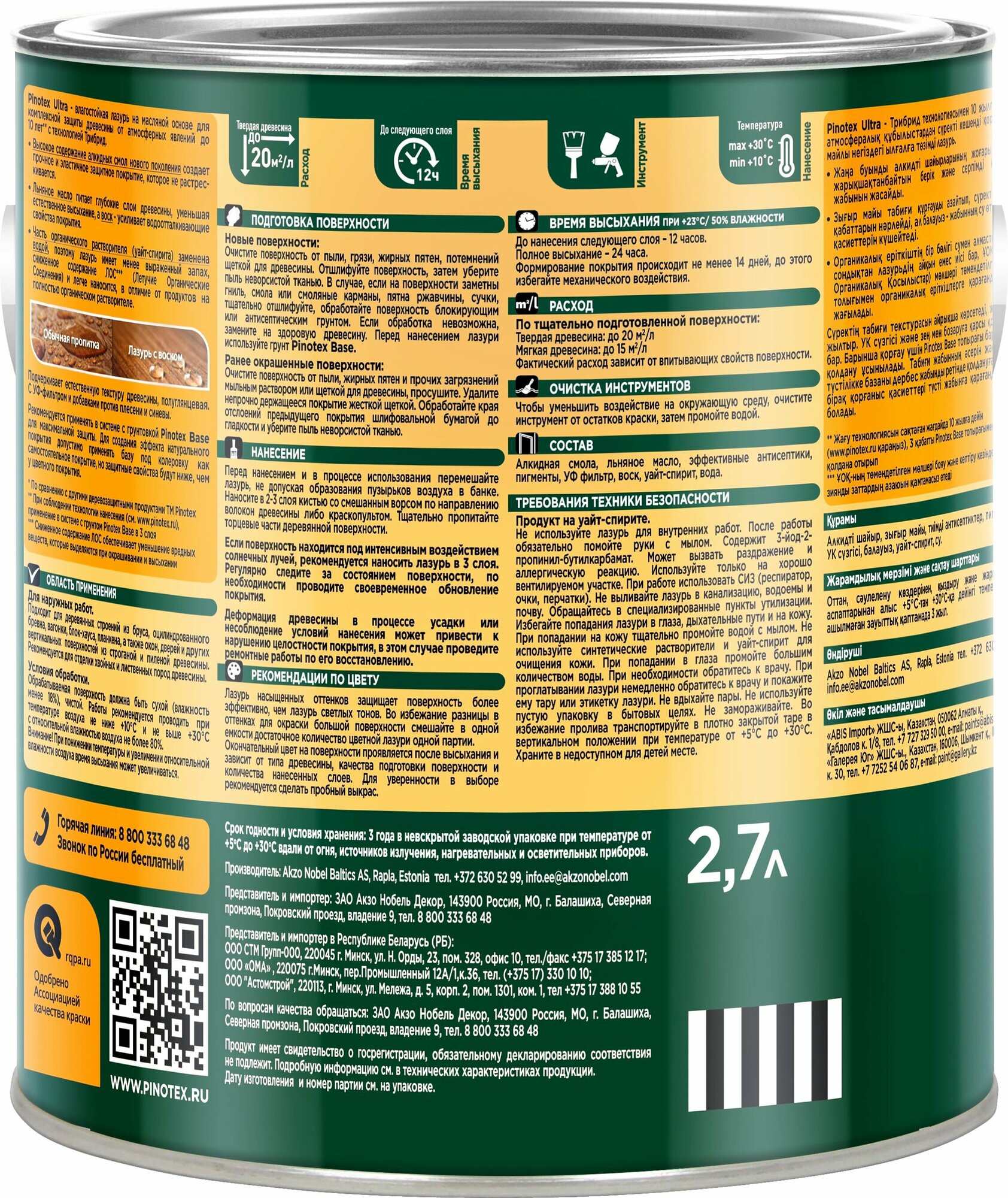 Лазурь PINOTEX ULTRA защитная влагостойкая для древесины сосна 2,5 л