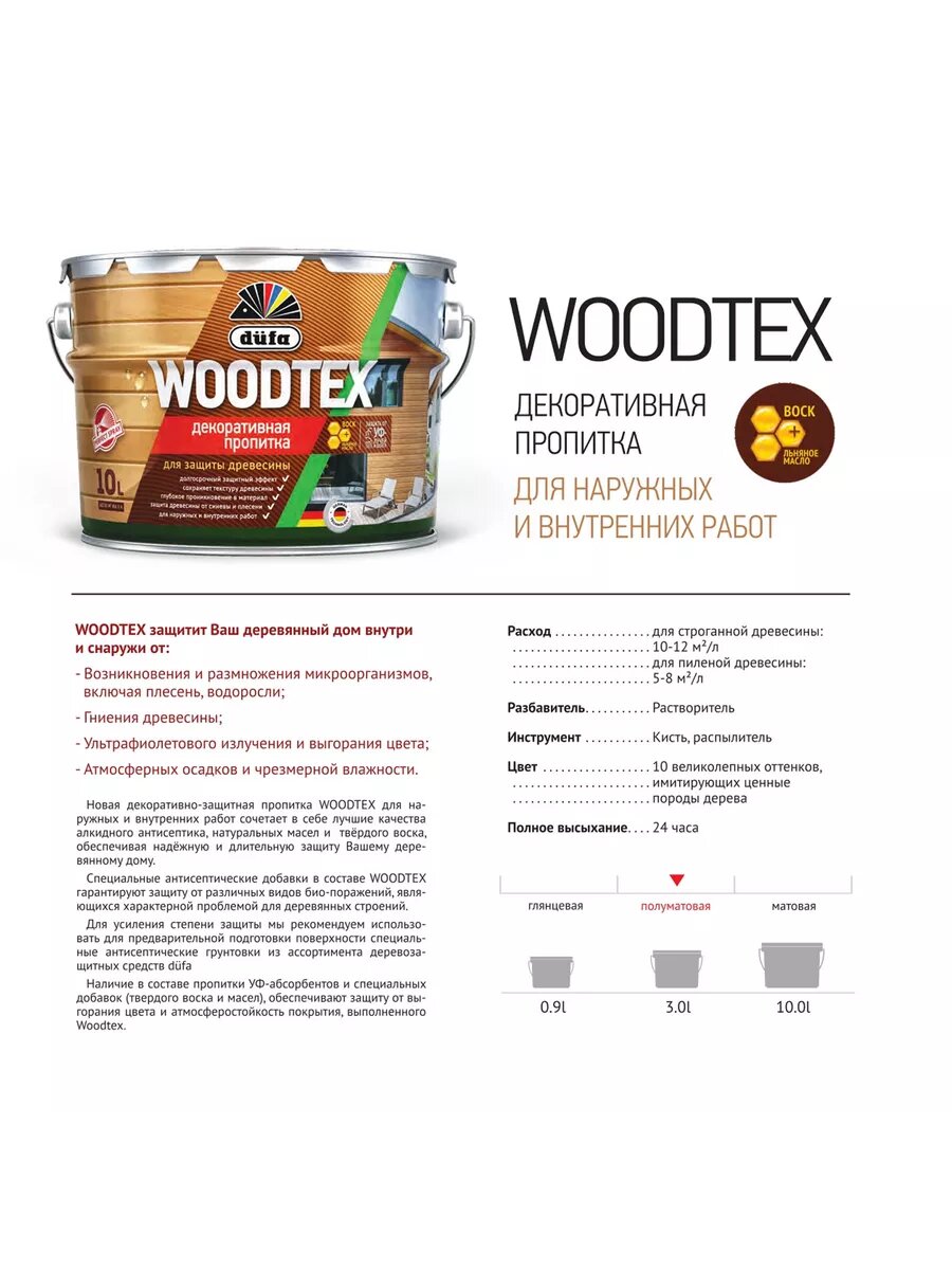 Декоративная пропитка для древесины Dufa Woodtex полуматовая (10л) сосна
