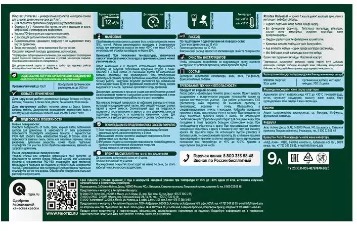 Пропитка для дерева на водной основе 2 в 1 Пинотекс Универсал (9 л) карельская сосна, полуматовая