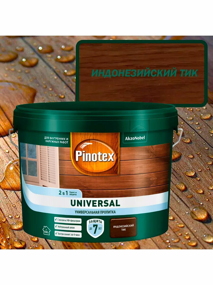 Купить Универсальная пропитка на водной основе 2в1 для древесины Pinotex Universal полуматовая (9л) индонезийский тик