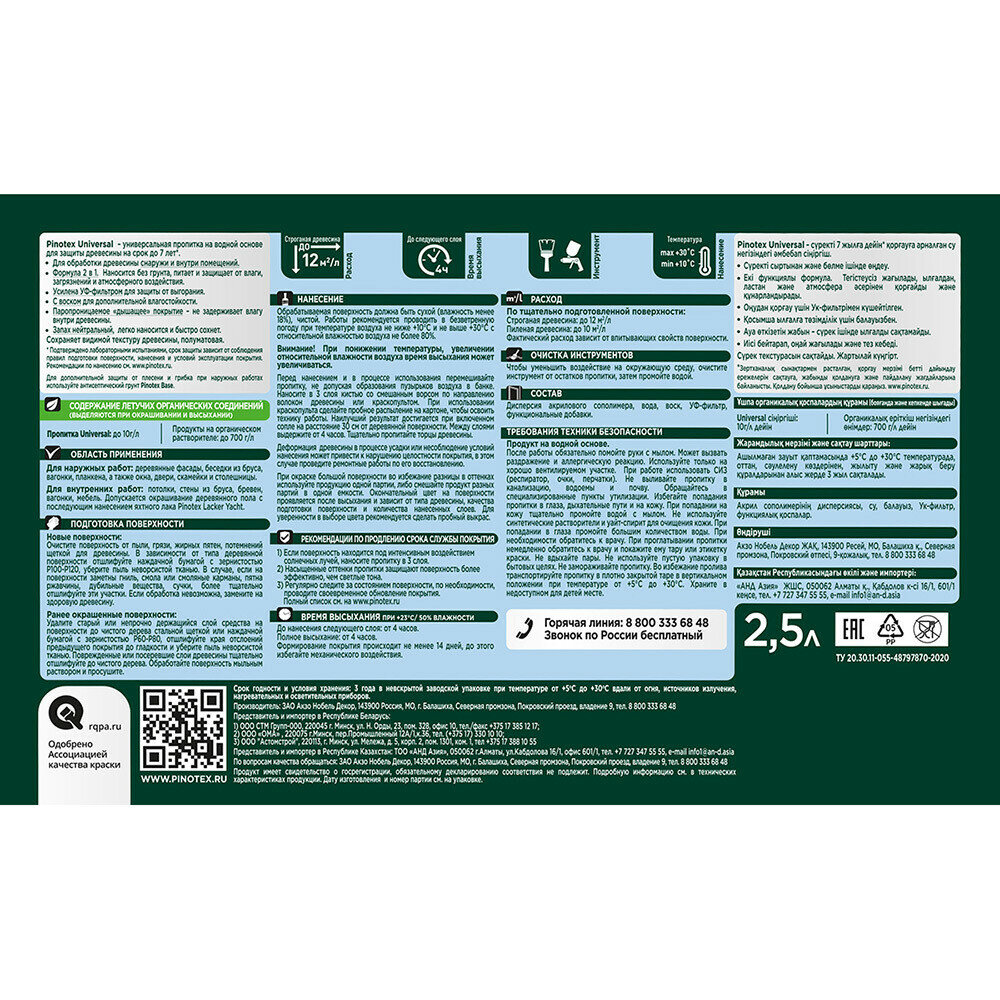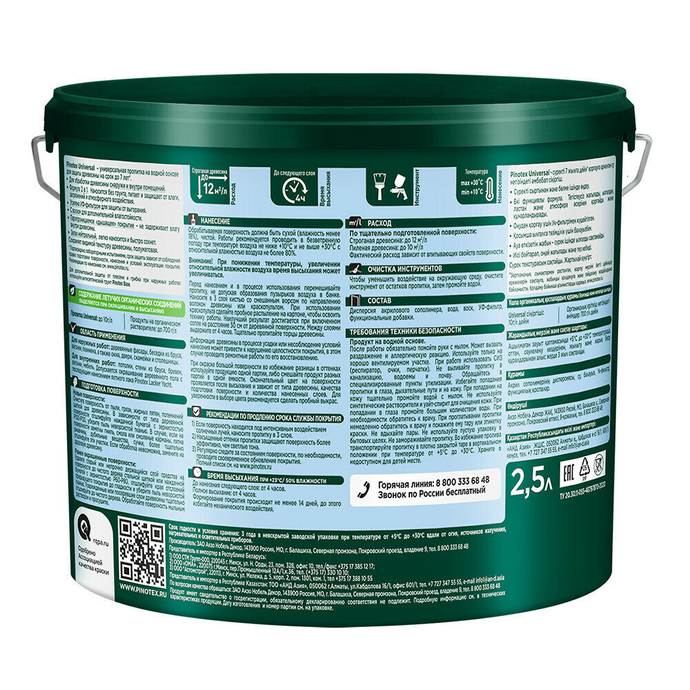 Пропитка Универсальная Pinotex Universal 2 в 1 2.5л Орегон Полуматовая на Водной Основе для Защиты Древесины до 7 Лет / Пинотекс Универсал.
